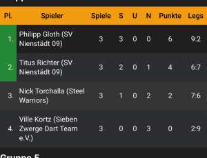 Titus und Philipp trafen in Gruppe 4 auf harte Konkurrenz von den Steel Warriors und dem 7 Zwerge Dart Team.