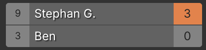 Im zweiten Spiel trafen Stephan und Ben aufeinander. Ben überzeugte mit besserem Scoring, ließ jedoch beim Checkout zu viele Chancen liegen. Stephan nutzte seine Gelegenheiten konsequent und sicherte sich einen 3:0-Sieg. Ein eindrucksvolles Beispiel dafür, wie wichtig es ist, nicht nur hoch zu scoren, sondern auch effizient zu checken.